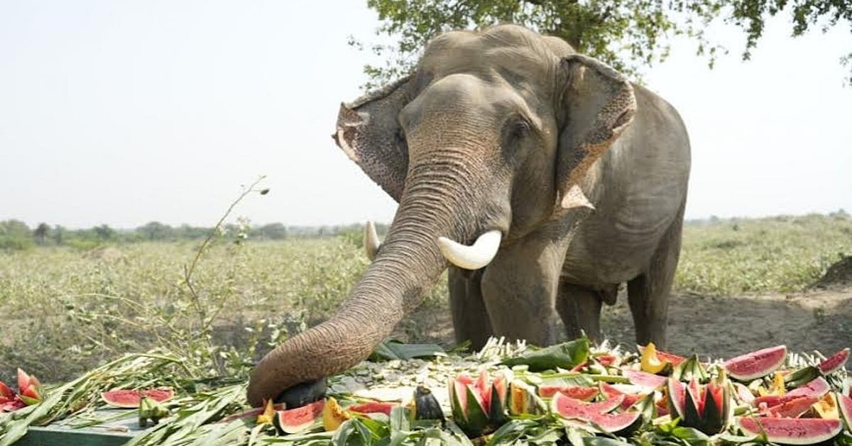 “To celebrate his first anniversary with Wildlife SOS, the team organized a special fruit party for Vayu, featuring bananas, papayas, watermelons, pumpkins and cucumbers as a token of love,” a press release said.