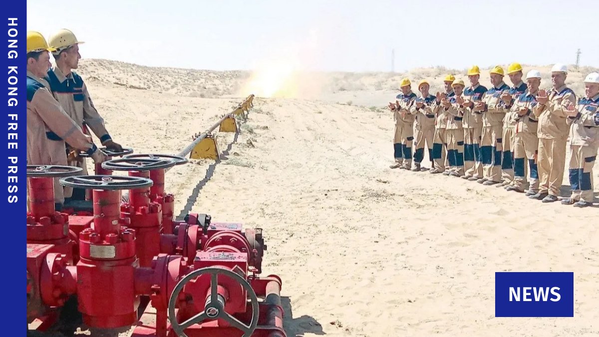 Standing alongside China’s Vice Premier Ding Xuexiang, dancers in the countries’ respective national colors performed a routine symbolizing the passing of gas from one to the other.