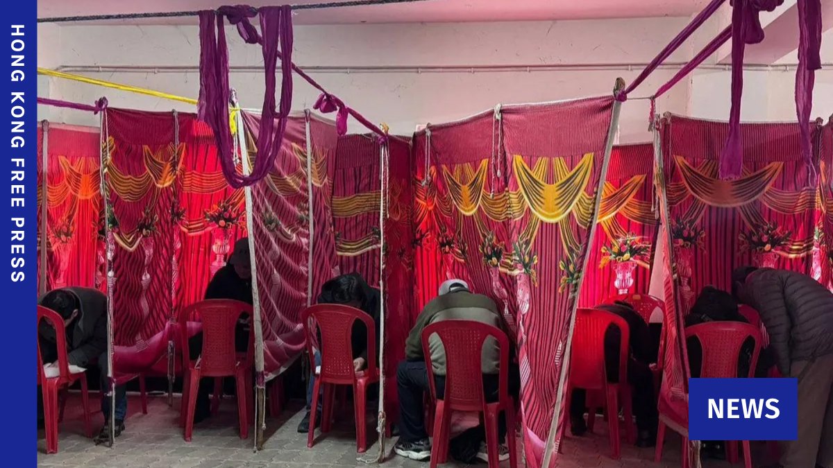 Lines of red-robed monks and nuns lined up to vote in the Indian hill town on Sunday.