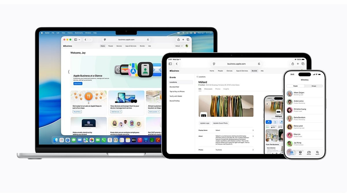 Unlike the Google Workspace suite, which is a cloud-first service, Apple Business is a unified hardware-oriented system that offers customized device management, custom domain email, calendars, and productivity apps (Pages, Keynote).