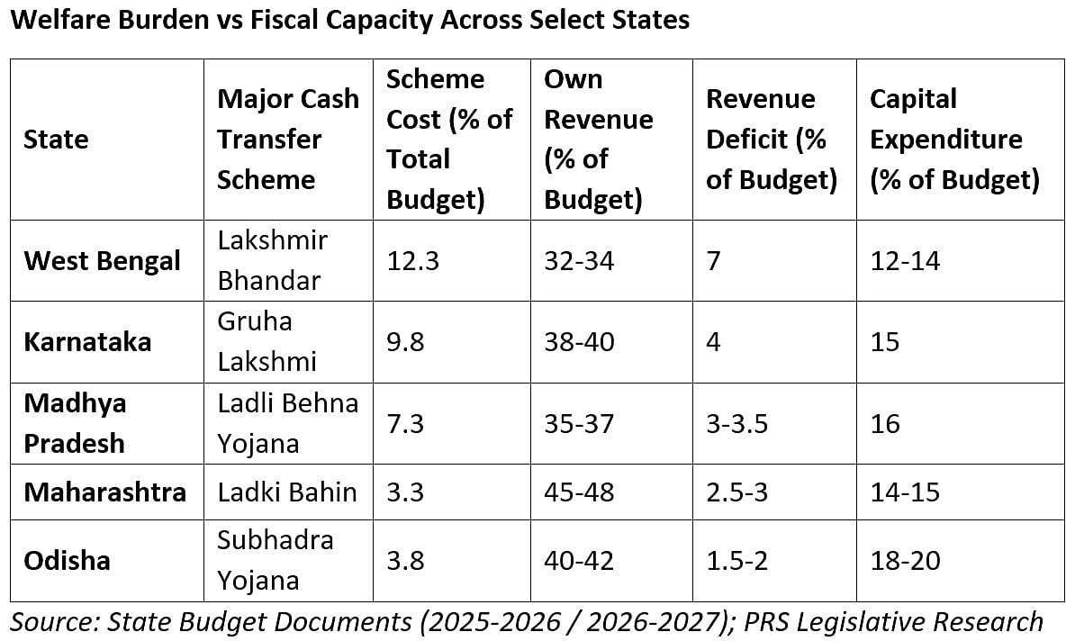 Expanding India’s cash transfer regime is not simply a matter of welfare intent but of fiscal design. The critical issue is whether states have the revenue power to support such commitments without compromising long-term investment. A comparison between the leading states reveals a clear divergence between welfare ambition and fiscal capacity.